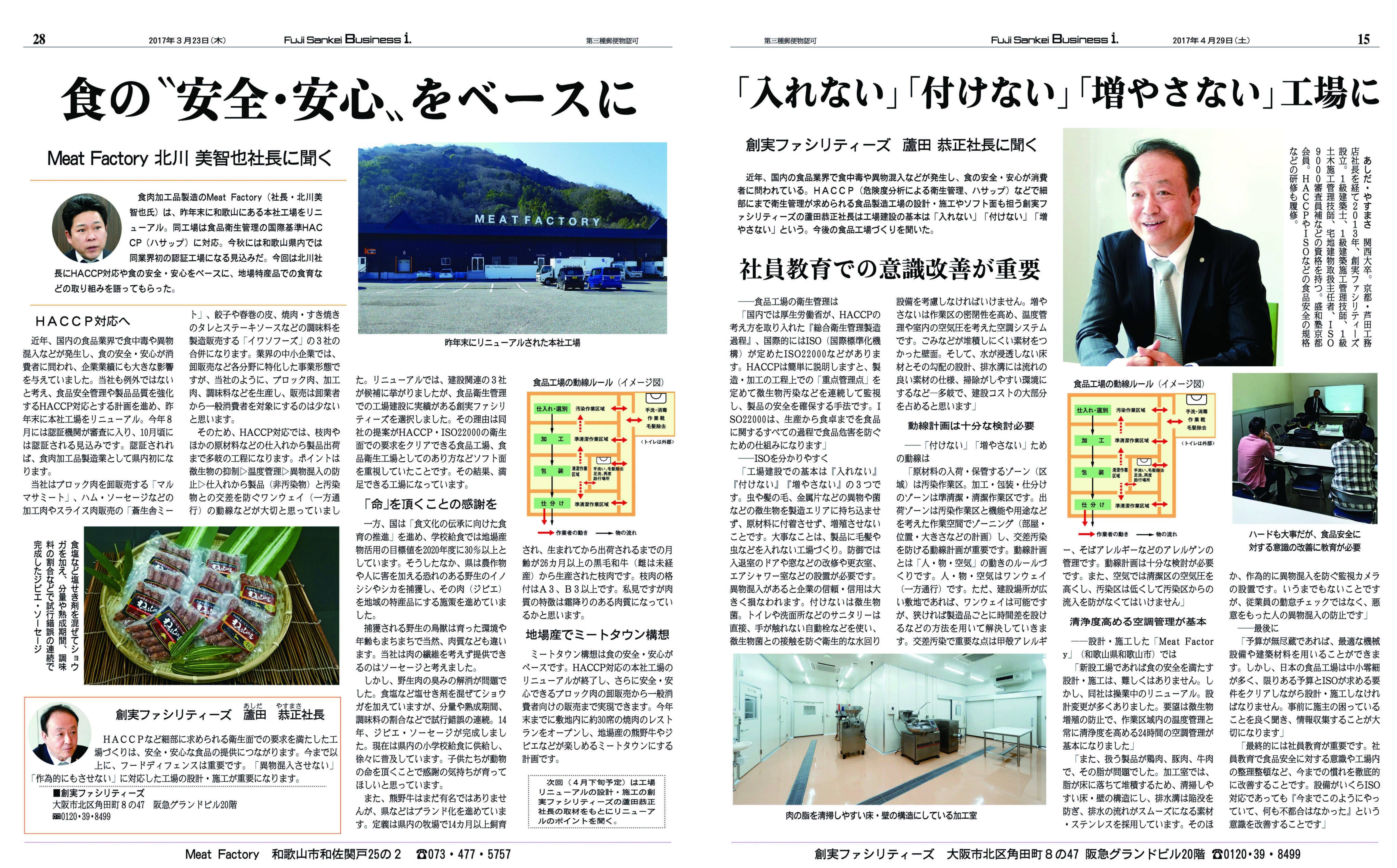 既存の施設環境を鑑みながら更なる生産性の工場、効率化、ランニングコスト削減、衛生的な環境などなどを成しえるハードにHACCPシステムに代表される衛生管理プログラムなどのソフトを調和させた計画が「かくあってほしい」という施設を実現する手掛かりになってくれると考えます。